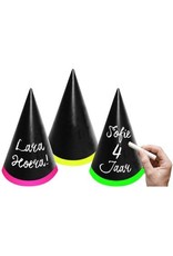 Beschrijfbare Feesthoedjes - 6 stuks. kleur: Meerkleurig. Deze hoedjes zijn 18 cm breed en 10cm hoog. Het artikel is gemaakt van karton.